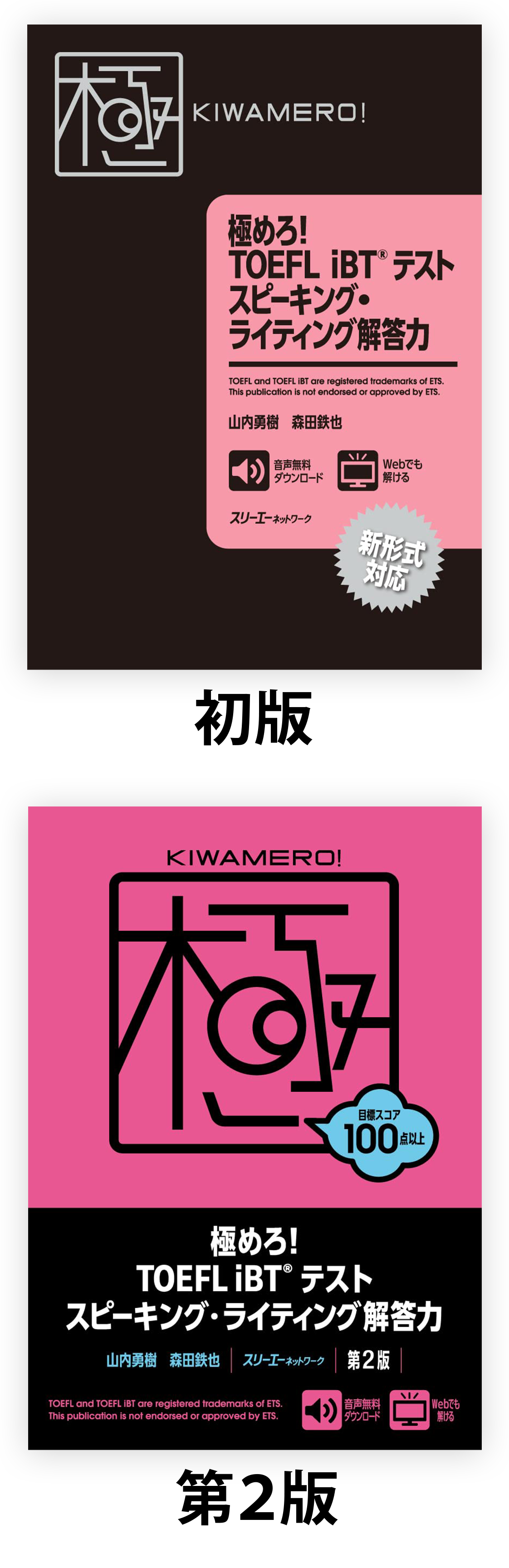 このページは、「極めろ! TOEFL iBT® テスト スピーキング・ライティング解答力」のオンラインコンテンツ使用のための登録ページです。以下にご記入のアドレスに、オンラインで問題が解けるサイトのURLとパスワードが送付されます。 Emailと、TOEFL目標点を入力して送信してください。送信から2-3営業日で受講が可能になります。 ※現在初版と第2版の2つのバージョンが存在します。お手数ですが、お手持ちの書籍がどちらかをご確認いただき、フォームの該当する方にチェックを入れてください。 |